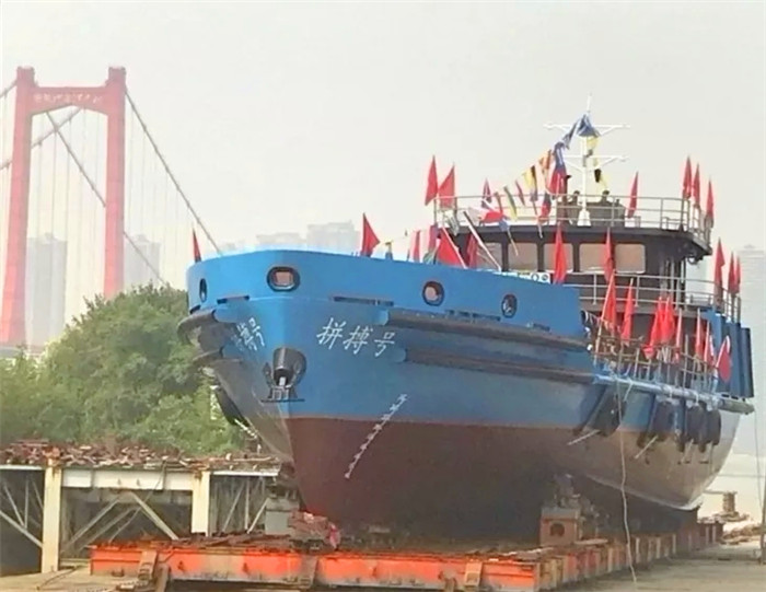 2018年10月18日,由武船集團船舶公司承制的500HP碼頭物資轉運機動船“拼搏號”順利下水。這標志著該船的主體建造工作已圓滿完成,即將進入到內裝和系統調試階段。