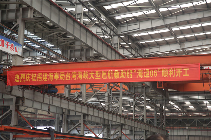 2019年5月23日上午,福建海事局臺灣海峽大型巡航救助船“海巡06”開工儀式在武船集團(tuán)雙柳基地六連跨內(nèi)業(yè)車間舉行。