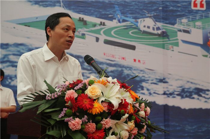徐增福致辭表示,臺灣海峽大型巡航救助船承載著保障國家重大發(fā)展戰(zhàn)略、服務(wù)臺灣海峽兩岸交流交往、提升海事履職能力的重要使命,是福建海事局設(shè)施建造中的重大標(biāo)志性工程。我們堅信并希望武船集團(tuán)能夠克服重重困難,在多方的大力支持及配合下,保質(zhì)保量按期交付一艘“精品船”、“明星船”,為進(jìn)一步增強(qiáng)我國海事監(jiān)管和應(yīng)急反應(yīng)能力,承擔(dān)起臺灣海峽海上交通安全保障和海上救援的重任助力!