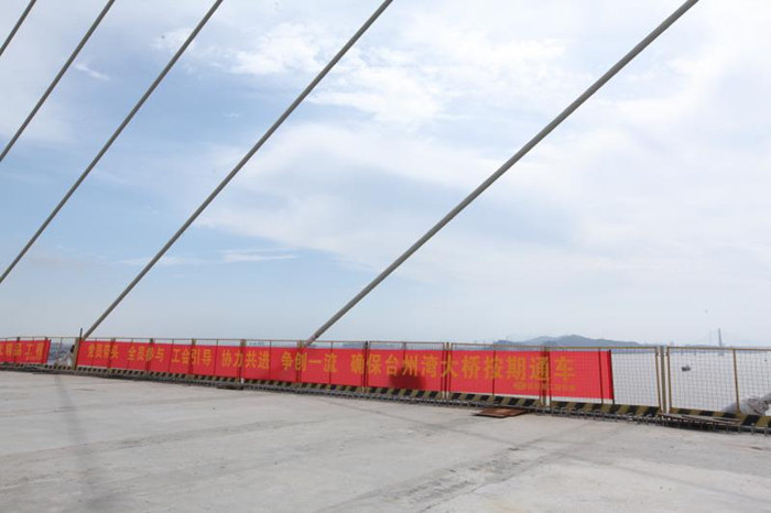 臺州灣大橋主橋為主跨488米的雙塔雙索面疊合梁斜拉橋,全長948米,是臺州沿海高速公路的控制性工程,它的順利合龍,標志著大橋主體工程建設已進入收官階段。