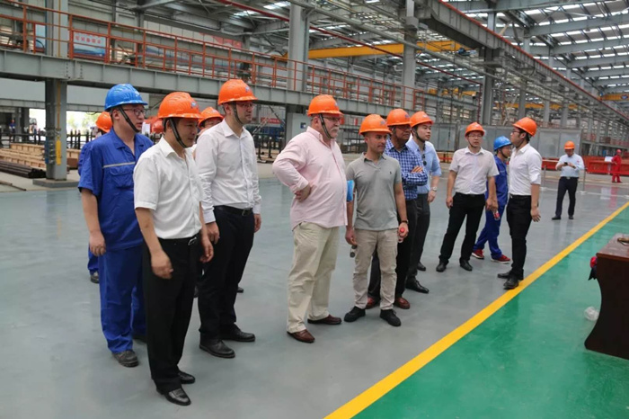 儀式后田軍帶領(lǐng)艾米力?杜等一行參觀雙柳武船分段車間