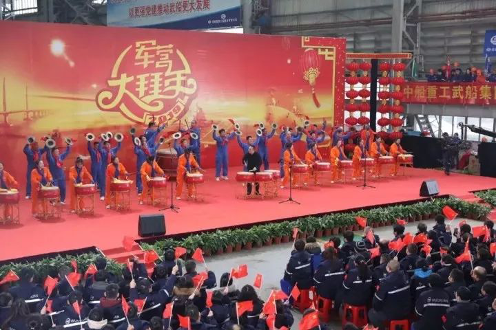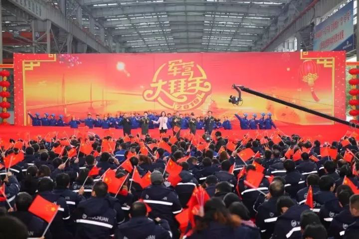 超贊,部隊文藝輕騎兵來襲!歡聲笑語,歌舞飛揚!武船集團鐵骨鋼架的雙柳基地四聯(lián)跨廠房,帶你感受不一樣的《軍營大拜年》!文藝輕騎兵精彩的演唱、雜技、京劇、書法,帶你感受燃爆武船的熱鬧氣氛。武船人的歡慶鑼鼓、朗誦《無悔軍工人》、歌曲《龍船調(diào)》,向你訴說著軍工人的別樣情懷:當你成為武船人的那一刻,你就選擇了星辰大海的征途。武船人和軍人一樣“能打仗、打勝仗”,多少風雨奔波,多少風霜堙沒,都不曾熄滅武船人興船報國的誓言,激勵武船人牢記使命、勇?lián)負?、矢志強軍。身后有祖國和人民的凝眸,心中的國永遠比家大!