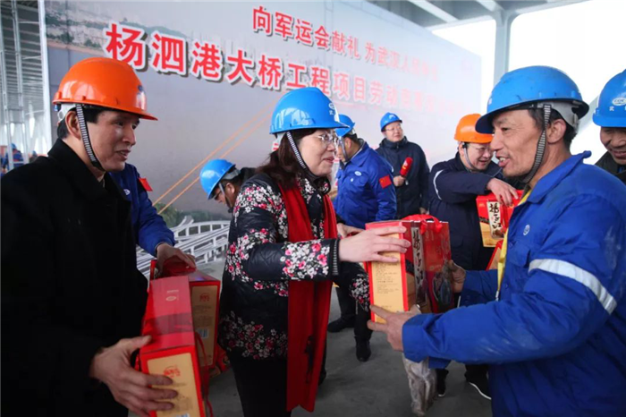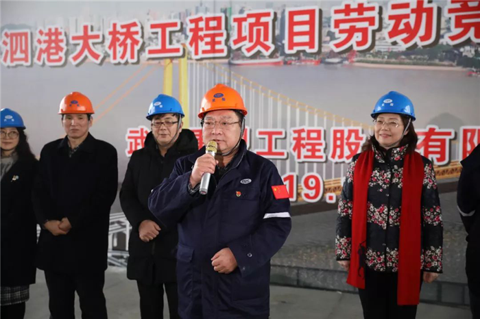 1月28日下午,寒風(fēng)蕭蕭,細雨蒙蒙,在楊泗港大橋橋面建設(shè)工地,市工會聯(lián)合武船集團舉行“當(dāng)好主人翁 建功新時代”2019年第一場勞動競賽活動啟動儀式。
