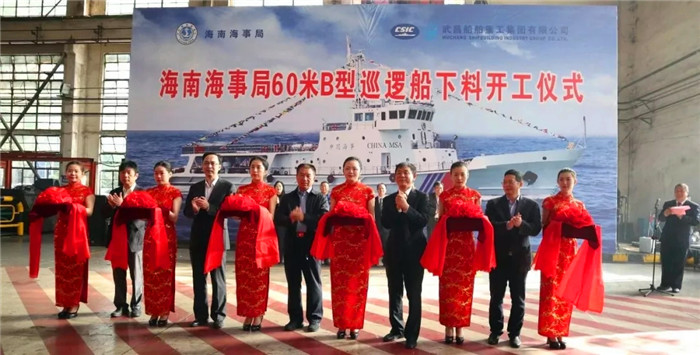 2018年10月26日上午,海南海事局60米級(jí)B型海事巡邏船開(kāi)工活動(dòng)在武船集團(tuán)船舶公司內(nèi)業(yè)車(chē)間舉行,武船集團(tuán)副總經(jīng)理王渭齡致辭,海南海事局副局長(zhǎng)效國(guó)良發(fā)表講話并下達(dá)了開(kāi)工指令。