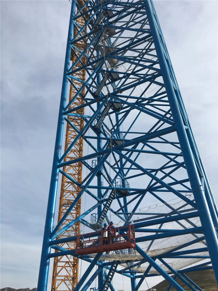 2019年6月,試驗場6個鋼結構塔架拔地而起,與之相匹配的共18套絞車設備、36根鋼絲和700余組(高空500余組、近地200余組)導向輪,以及相關配套電纜、電氣設備設施的安裝工作接近尾聲,待“隨動盤”運到,便可以開始進行總裝和調試工作。