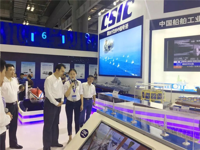 ▲2018重慶高交會上海軍潛艇學院院長王宇,參觀武船三峽升船機