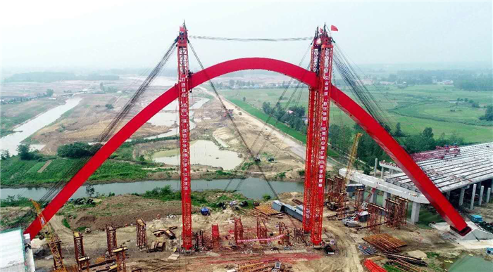 濟(jì)祁高速新橋大橋鋼箱拱順利合攏;