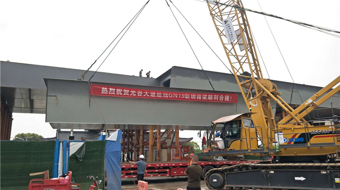 由重裝公司承接的光谷大道鋼箱梁GN19聯(lián)總長(zhǎng)217米,寬26米,共計(jì)82個(gè)節(jié)段,全橋合計(jì)3347噸。重裝公司充分發(fā)揚(yáng)武船迎難而上、精誠(chéng)合作的精神,踐行“誠(chéng)信為本,信譽(yù)至上”的經(jīng)營(yíng)理念,同時(shí)嚴(yán)把安全關(guān)、質(zhì)量關(guān),圓滿完成項(xiàng)目節(jié)點(diǎn)履約工作, 提前一周完成了光谷大道主線鋼箱梁6?30貫通的重大節(jié)點(diǎn)。