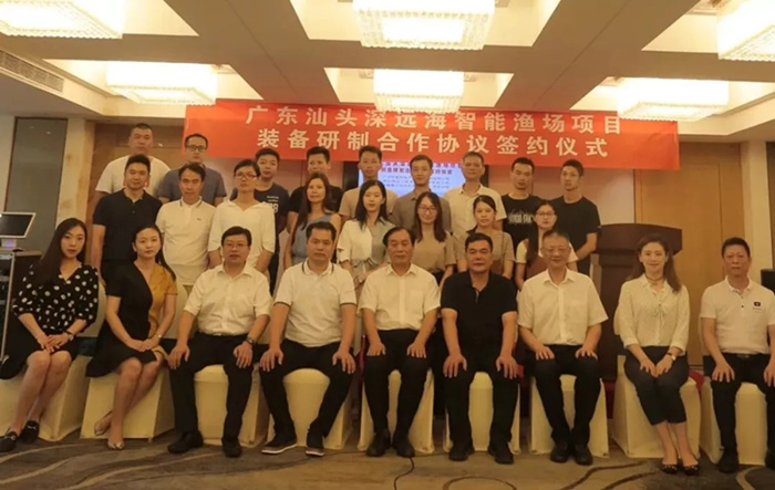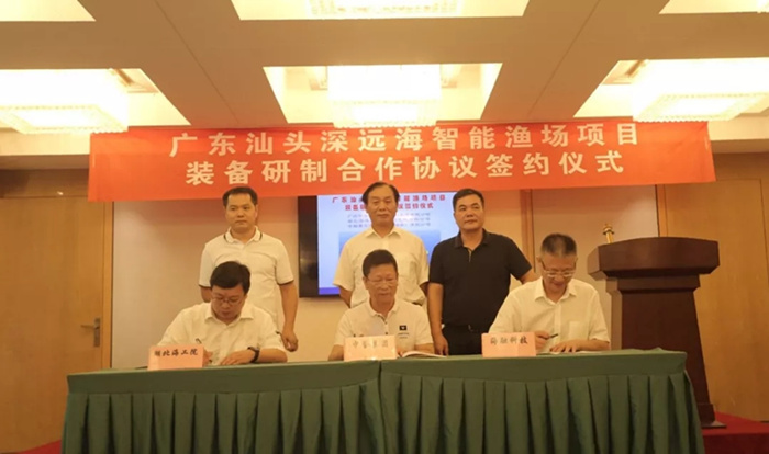 2018年8月22日,武船集團湖北海洋工程裝備研究院有限公司及中船重工海融裝備(海南)有限公司與廣州中譽科技產(chǎn)業(yè)控股集團有限公司在廣東省汕頭市舉行簽約儀式。在武船集團黨委書記、董事長楊志鋼,汕頭市海洋與漁業(yè)局局長周昭勇的共同見證下,與中譽集團簽訂了《廣東汕頭深遠(yuǎn)海智能漁場項目裝備研制合作協(xié)議》。
