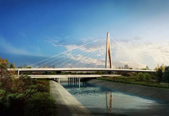 該項目位于鄭州市四環線西部(大河路-南四環),規劃為快速路,全長21.6km,高架橋為雙向八車道。項目南起西四環光明路口向南300m,北至西四環晨星路口向北160m,全長5.95km。橋梁總長300m,橋面總寬49.16m,主橋屬獨塔雙索面斜拉橋,采用梁高3.5m鋼箱梁結構形式。