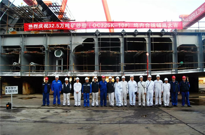 ▲32.5萬噸礦砂船10號船鋪底儀式現場