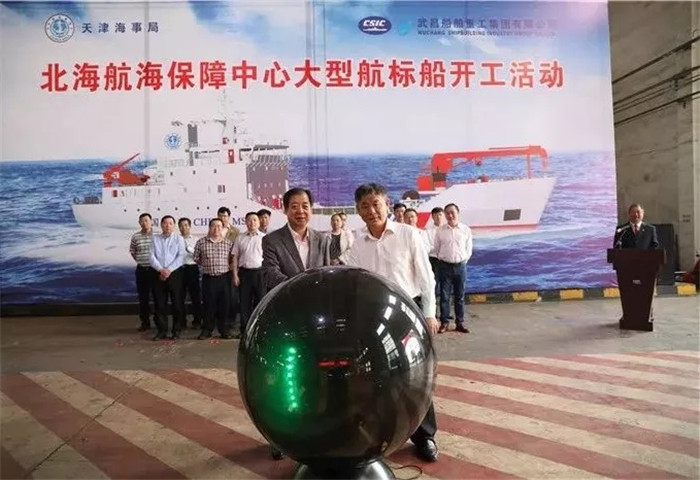 2019年4月26日上午,北海航海保障中心大型航標船在武船集團順利開工。該船建成后,將主要用于我國北方海區各港口航道的中大型燈浮標、活節式燈樁等助航設施的布設、撤除、檢查和維護作業,可用于沉船等應急標拋射,并能兼顧北方海區冰情期間對航標的應急布設、搶修和維護保養任務,具備一定的破冰能力,將對保障北方海區航道安全發揮重要作用。