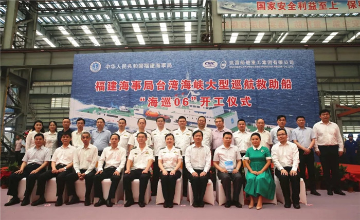 2019年5月23日上午,福建海事局臺灣海峽大型巡航救助船“海巡06”在武船集團雙柳基地順利開工。該船承載著保障國家重大發展戰略、服務臺灣海峽兩岸交流交往、提升海事履職能力的重要使命。建成后,主要用于臺灣海峽海事監管、海上救生、船舶救助、海上船舶溢油監測及海上應急處理,對維護國家海洋權益、開展國際交流合作具有重要意義。