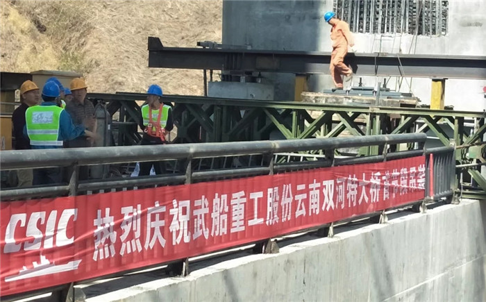 2019年4月18日,由武船重工股份承建的云南雙河特大橋首片鋼梁節段吊裝成功。云南雙河特大橋是格巧高速公路的重要組成部分。格巧高速公路是昆明至巧家高速公路與四川省寧南縣連接的關鍵線路,是川滇渝快速新通道的重要組成部分,建成通車后,將帶動昭通經濟跨越式發展,大幅提高云南入川通道的通行能力,對加強川滇渝經濟合作,推動長江經濟帶經濟發展,促進沿線革命老區的發展建設具有重要的意義。