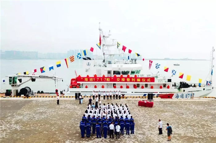 2019年6月25日,武船集團建造的海事系統首艘1200噸級全電力推進中型航標船“海巡1717”在汕頭正式交付列編。該船為國內首艘艉部甲板作業的航標船,將主要用于粵東及惠州海域港口航道燈浮標等助航設施的拋投、撤除、檢查、維修和復位施工作業,有助于完善一體化綜合導助航體系,大輻提升應急反應能力和海域內航標日常管養水平,更好地服務粵港澳大灣區建設,保障往來船舶航行安全。