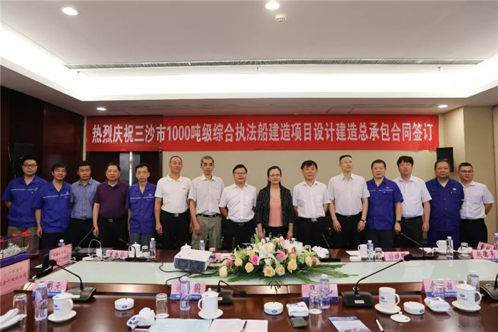 2019年6月21日,武船集團與三沙市海洋綜合行政執法局在武船雙柳基地簽訂1000噸級綜合執法船建造合同。該船建成后,將執行三沙市管轄海域內巡邏、監管等重要任務,擔負起維護國家海洋權益的重大使命。