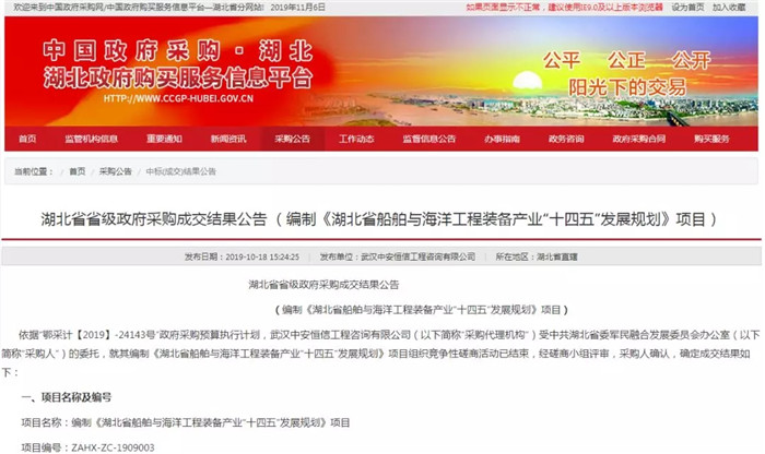 近日,從湖北省政府采購網(wǎng)獲悉,武船集團成功中標(biāo)湖北省委融辦的編制《湖北省船舶與海洋工程裝備產(chǎn)業(yè)“十四五”發(fā)展規(guī)劃》項目。