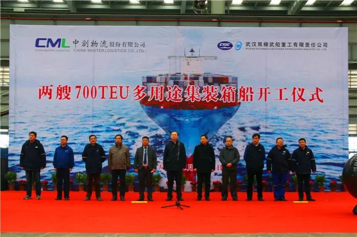 12月29日10時18分,由武船集團雙柳武船為中創物流青島遠大均勝海運有限公司建造的兩艘700TEU多用途集裝箱船,在雙柳基地順利開工。