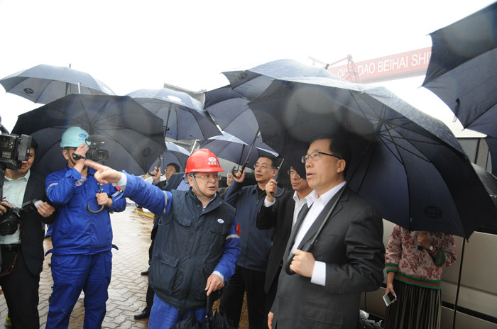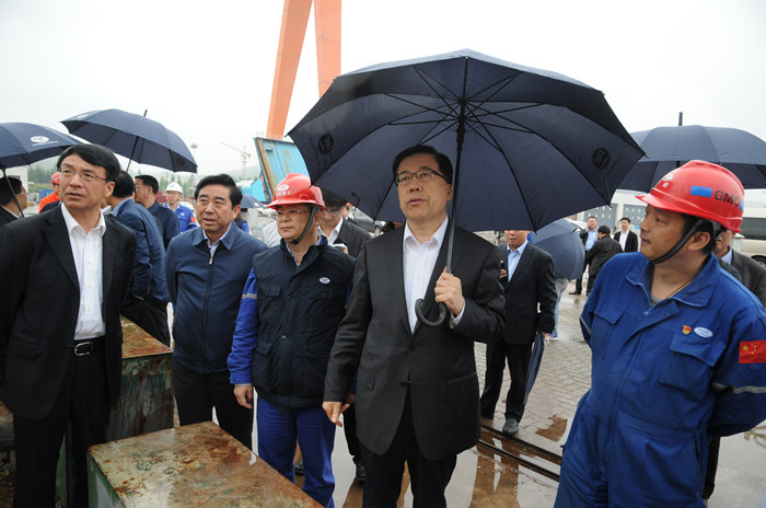 5月11日下午,山東省委常委、青島市委書記張江汀,市委常委、副市長王魯明,市委常委、西海岸新區(qū)黨工委書記、區(qū)委書記王建祥等領(lǐng)導(dǎo)一行到武船集團(tuán)北船重工調(diào)研企業(yè)科技創(chuàng)新、發(fā)展海洋經(jīng)濟(jì)等工作。
